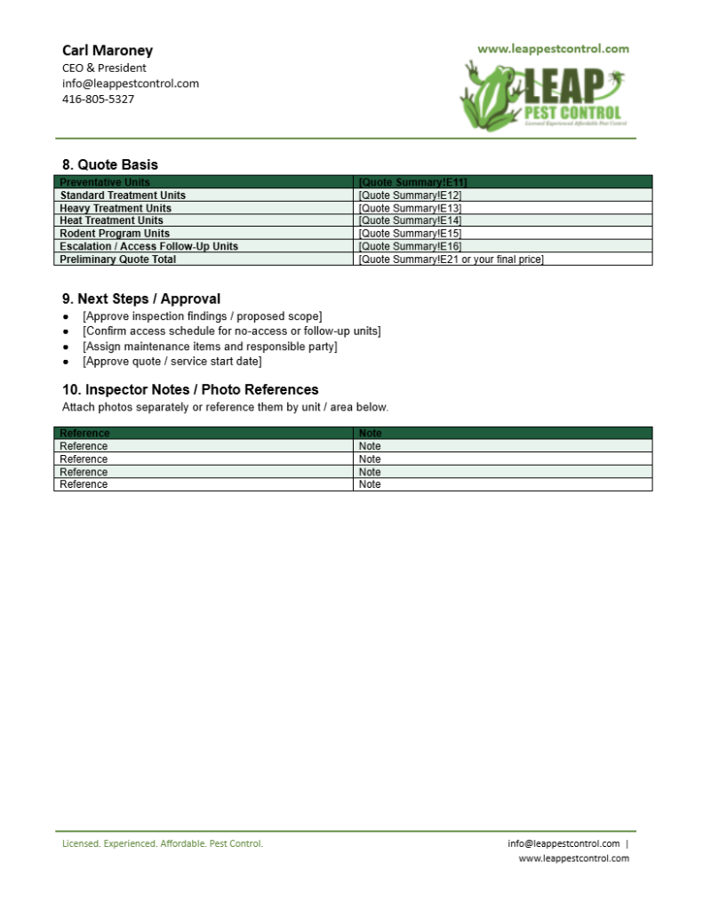 Sample Client Inspection Report & Quote Template